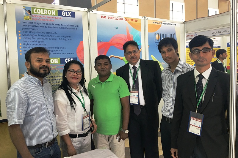 Colorant Ltd ,Ahmedabad ,one of the leading Reactive Dyes manufacturer and Exporter since last 15 years displayed their new range of Colron Reactive Dyes which is having high exhaustion and better fixation than the normal Reactive Dyes. About 300 visitors visited the stall . Among the visitors mainly Gazipur,Narayanganj,Chittagong mill owners and Technical Heads of various corporates, Brand and Retailer country Head and Dhaka Representatives were present. They were all convinced the manner in which the company VP Dr N.N.Mahapatra explained to the visitors from 2nd Sept to 5 th Sept. The visitors deeply discussed about the new range of innovative reactive dyes with the COLORANT TEAM which included Mr Bharat Trivedi ,Export Manager,Mr Pranay Paul ,Mktg Manager of Kolkata and Bangladesh . Madam Jo Arana and Mr Samuel also assisted the team in the stall.